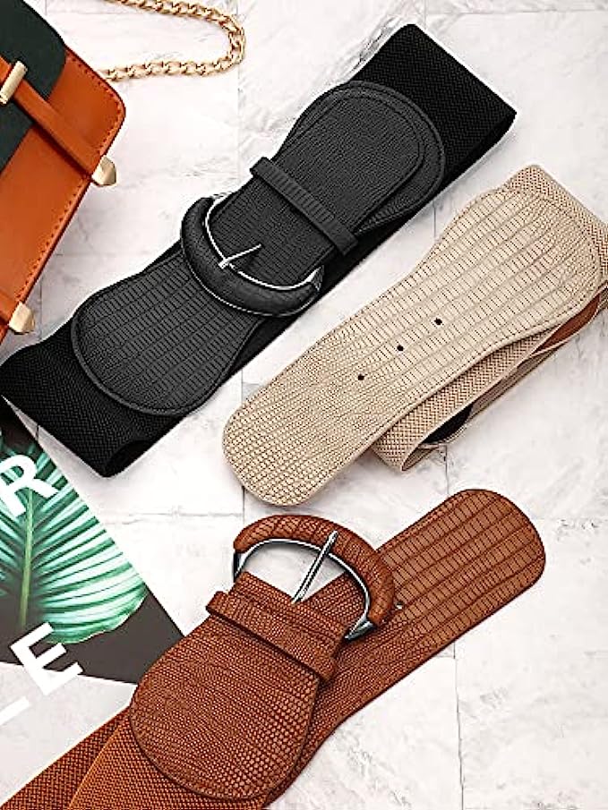 3 Pieces Women Wide Belt for Dresses Women Dress Belt Stretchy Cinch Belt Leather Elastic Belt for Ladies Dress Decoration