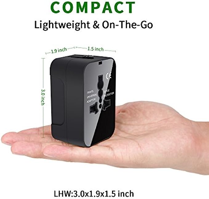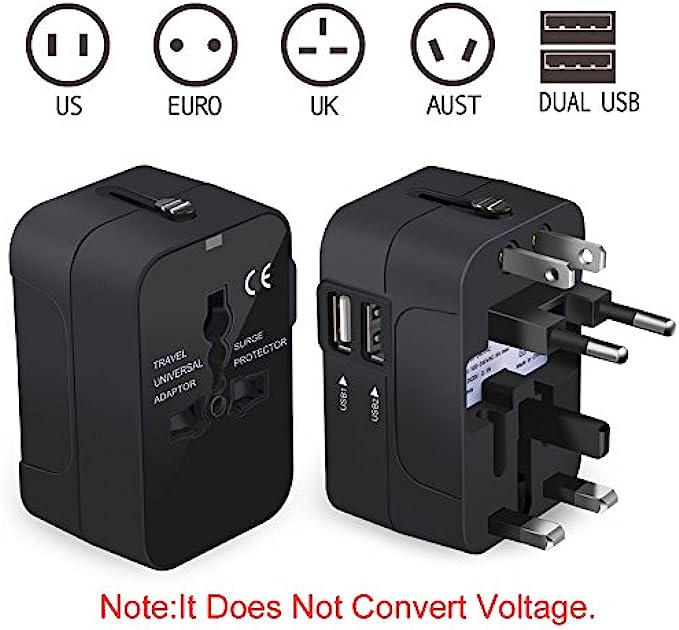 • DUAL USB CHARGING PORTS - World Adapter Plug compatible with almost all USB Devices like Apple iPhone x 8 8 plus 7 7s 6 6s 5s 4s, Sony, Blackberry, HTC, Lenovo, LG, ZTE, Huawei, and so on.