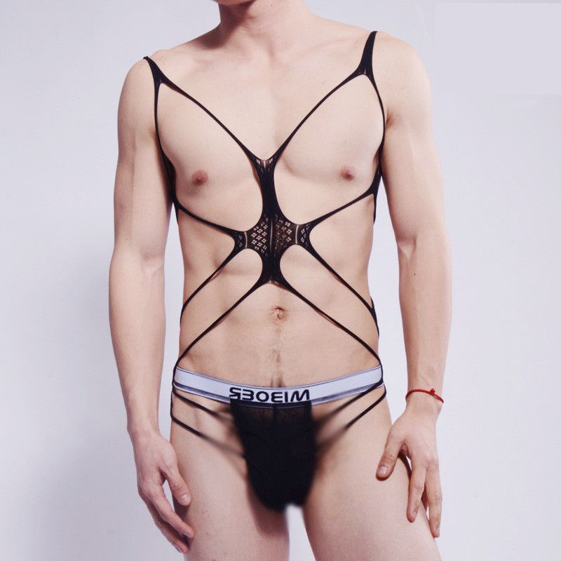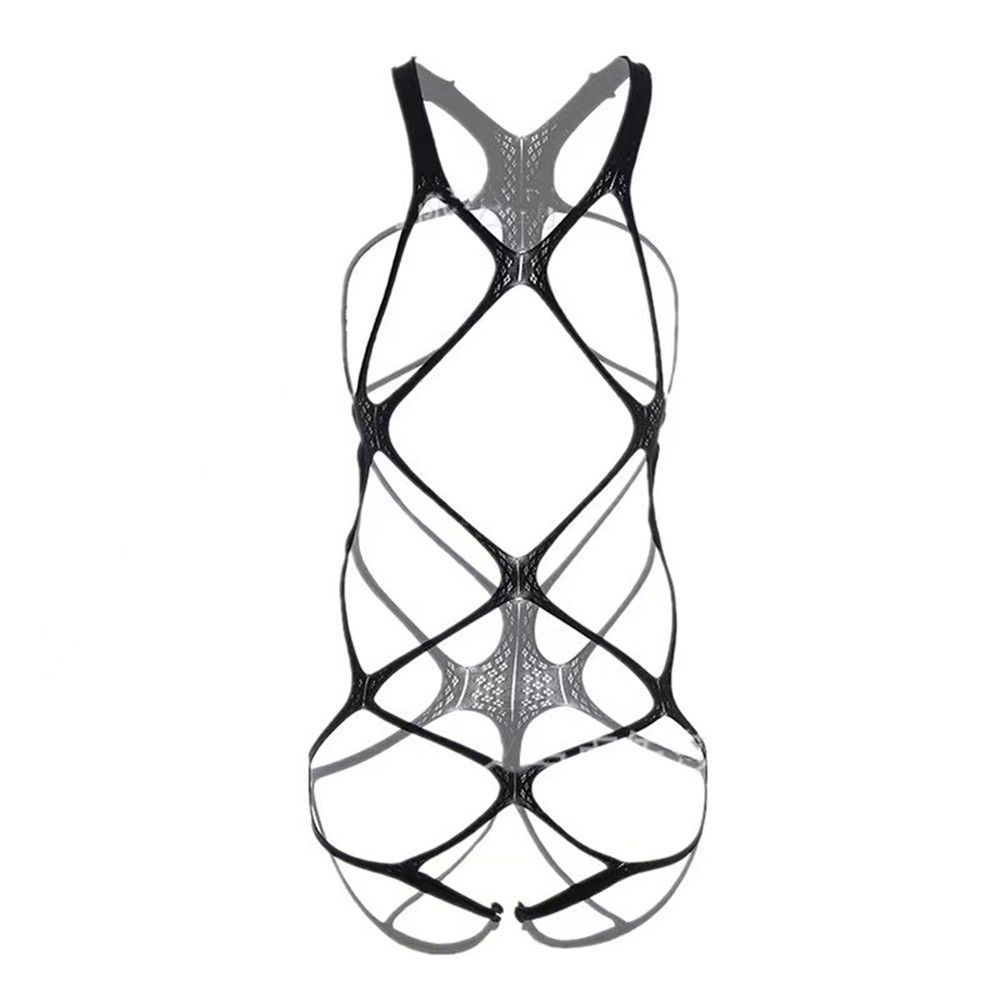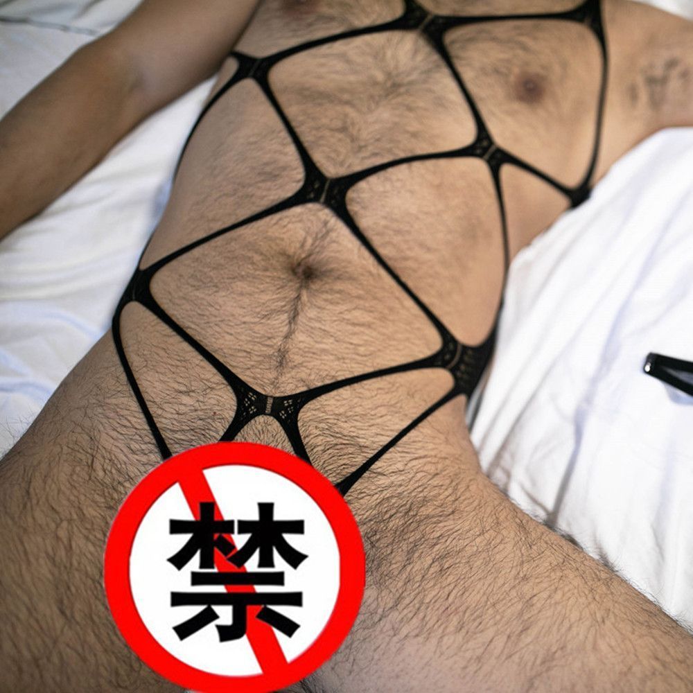 Bd137 Ready Stock European American Style Men's Sexy Hollow Stretch Bondage Tight-fitting Gauze Naked Revealing Body-showing Bed Temptation Bodysuit Young Boys Couples Sexy Sports Students Close-fitti