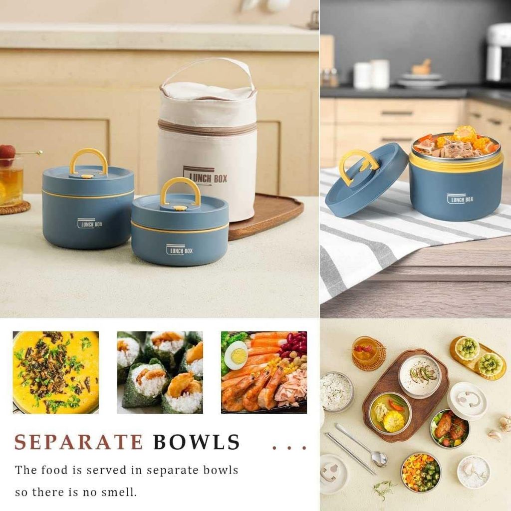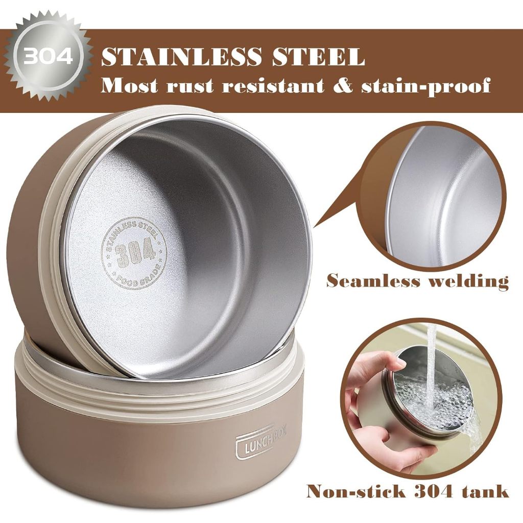 【SG Stock✅】Microwaveable 304 Stainless Steel Lunch Box Round Insulated Food Storage Box Sealed Thermos Food Container